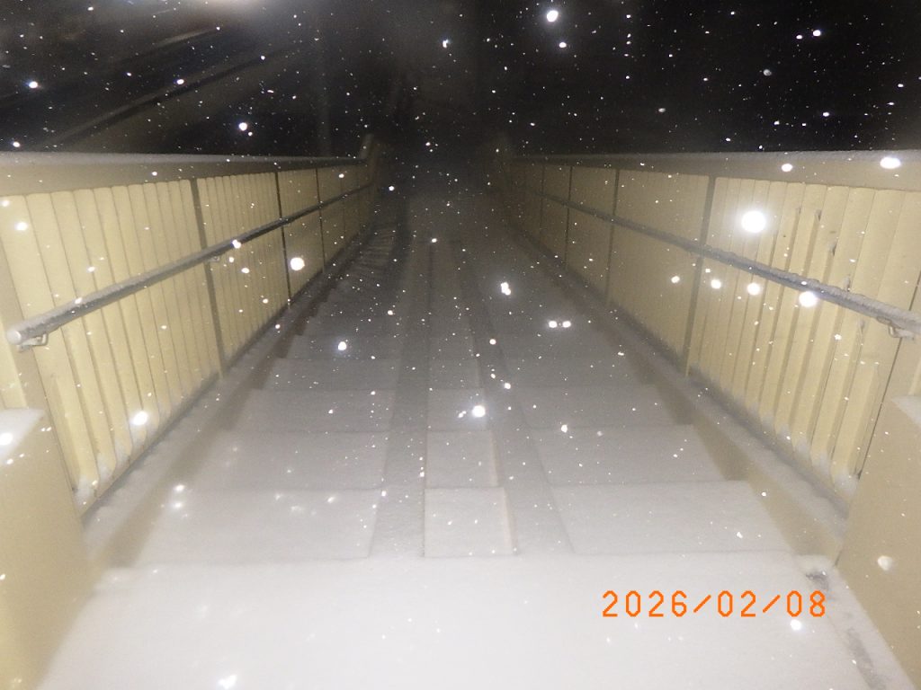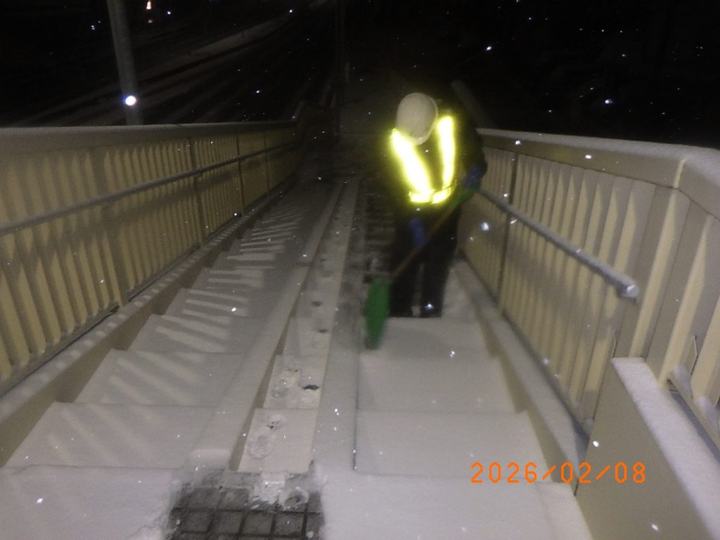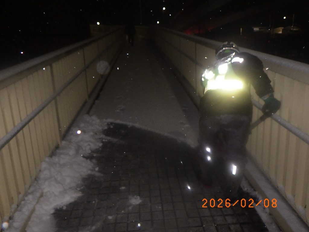 官公庁より連絡を受けて、地域の安全のため、前日深夜から塩カルの散布、除雪作業を行いました。